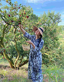 胡女士是第三代农民,也是位于中国东部的浙江省白水洋镇的 林老汉水果专业合作社的负责人。